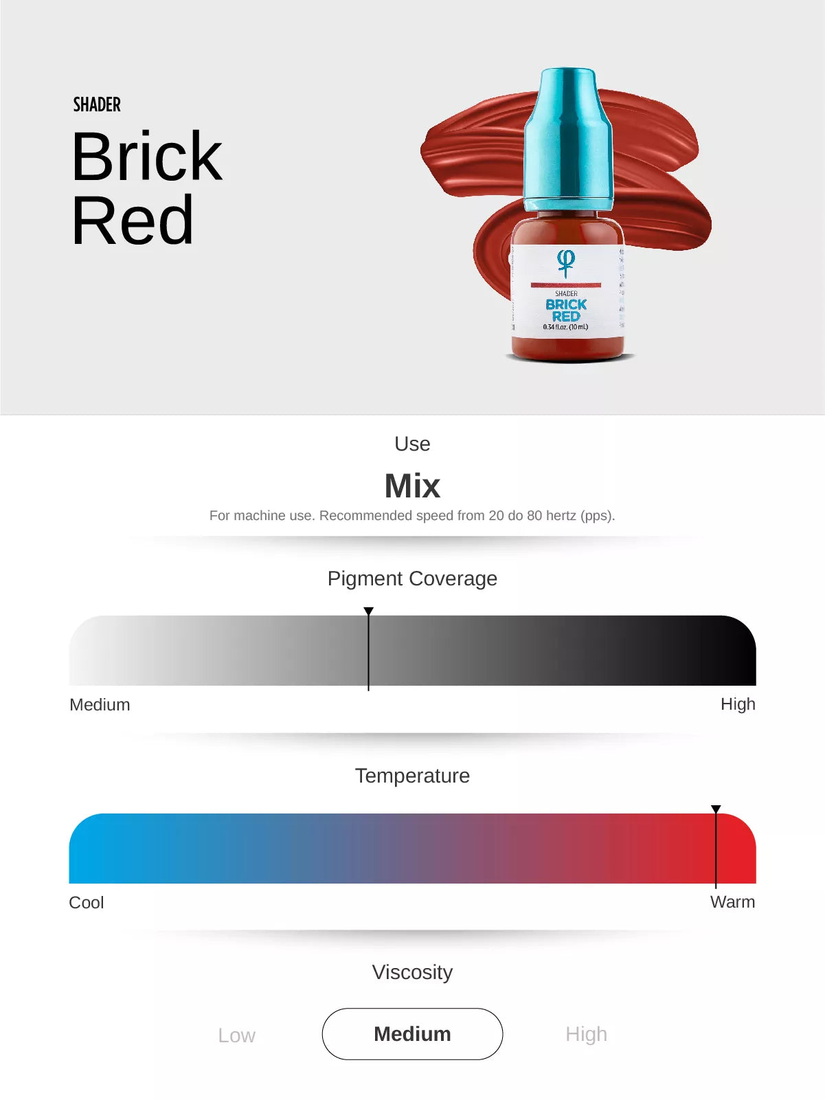 Brick Red es un pigmento inorgánico cálido para mezclar de nuestra colección PMU, diseñado para ofrecer un tono terroso intenso que complemente una variedad de tonos de piel. Está específicamente diseñado para mezclarse con otros pigmentos.