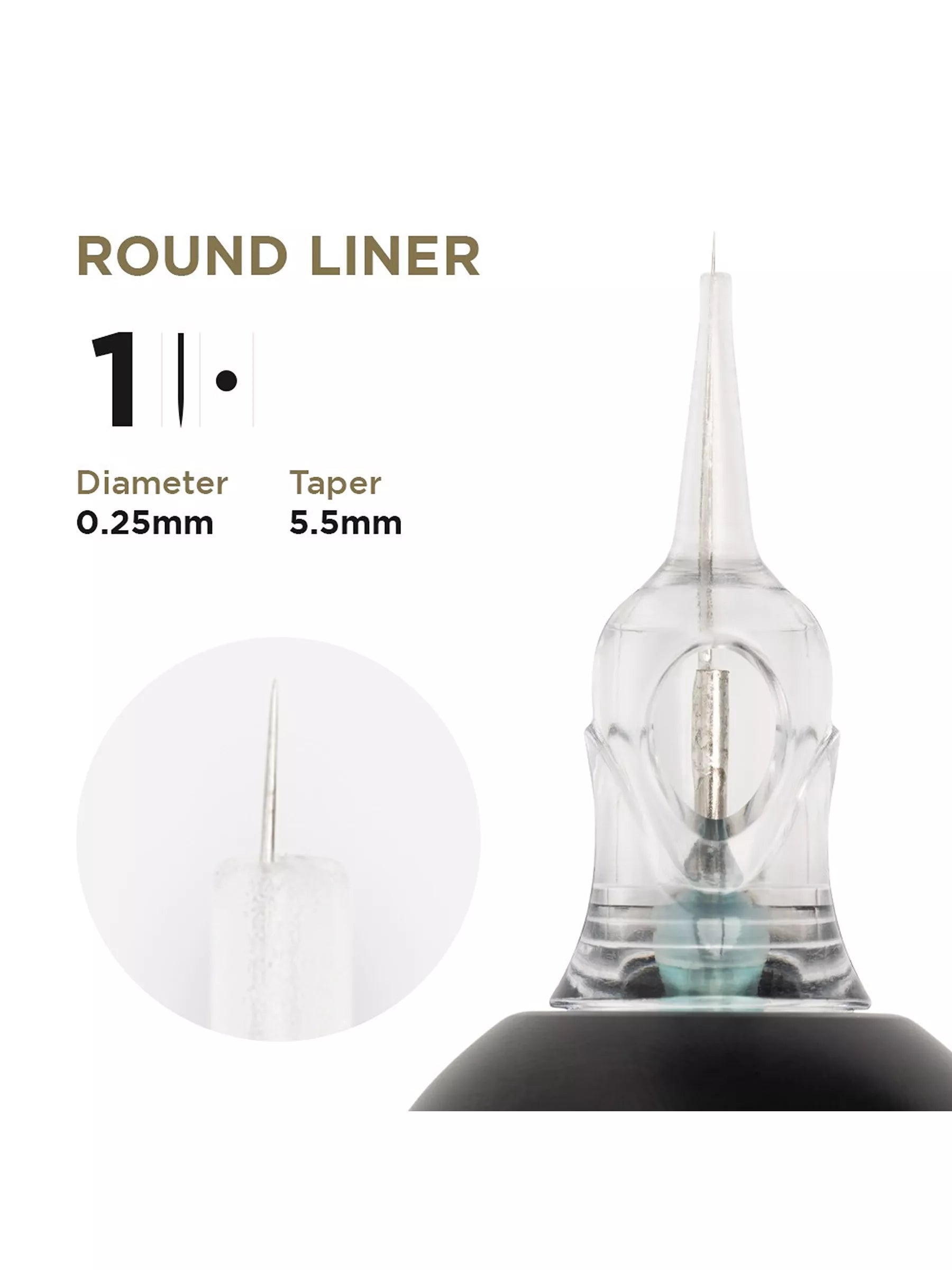 Punta 1R: ideal para detalles ultrafinos tanto en tatuajes como en PMU. Ofrece una precisión perfecta para diseños intrincados, trazos de cabello y delineado detallado en tratamientos de PMU.